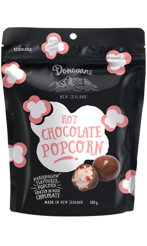 Marshmallow flavoured popcorn coated in creamy milk chocolate.