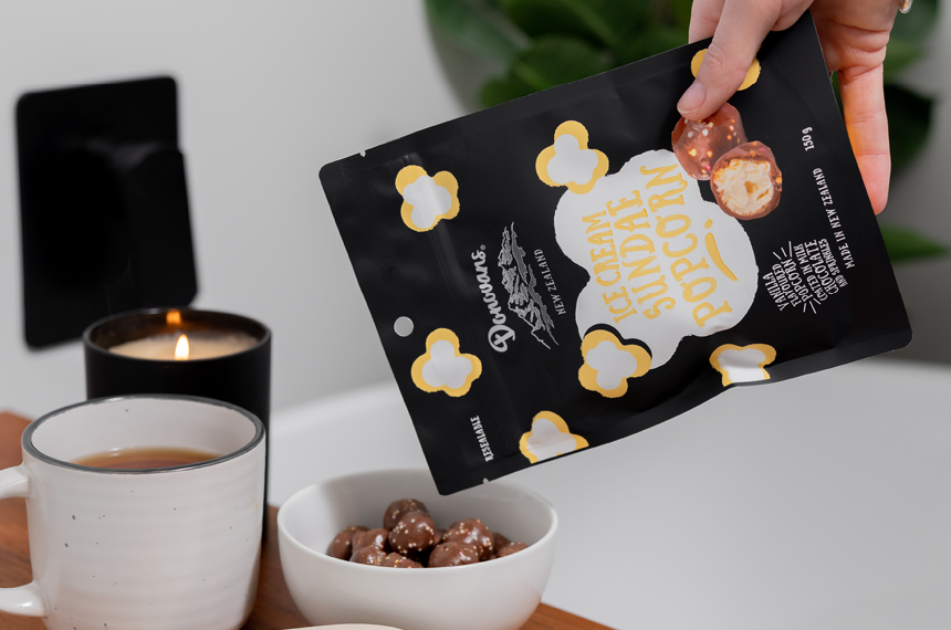 New to our chocolate popcorn range, Ice Cream Sundae Popcorn is a whole lot of fun and flavour in one irresistible bite! Vanilla ice cream flavoured popcorn coated in 35% cocoa milk chocolate and sprinkles!